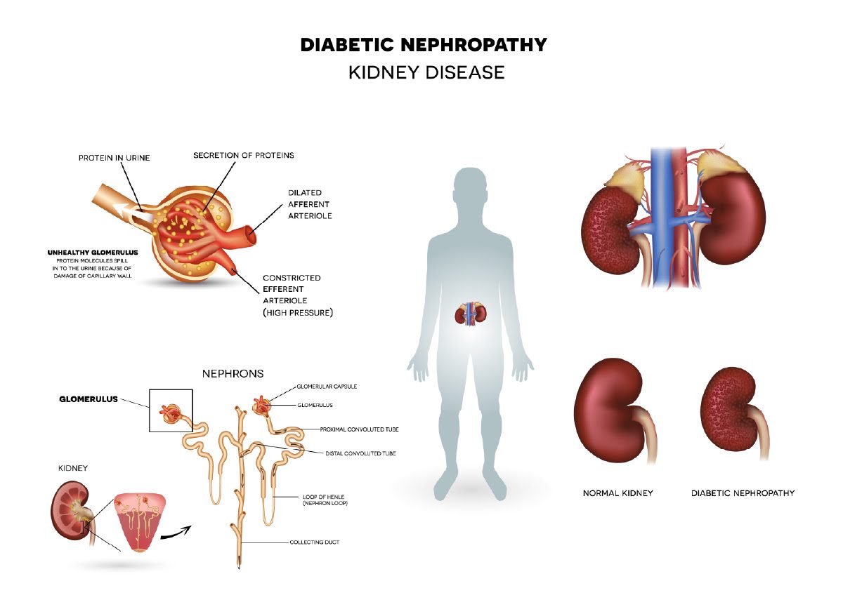 La nefropatia diabetica provoca una perdita progressiva e irreversibile della funzione renale e complicanze derivanti dalla ridotta funzione del rene, associate ad una condizione di patologia diabetica.