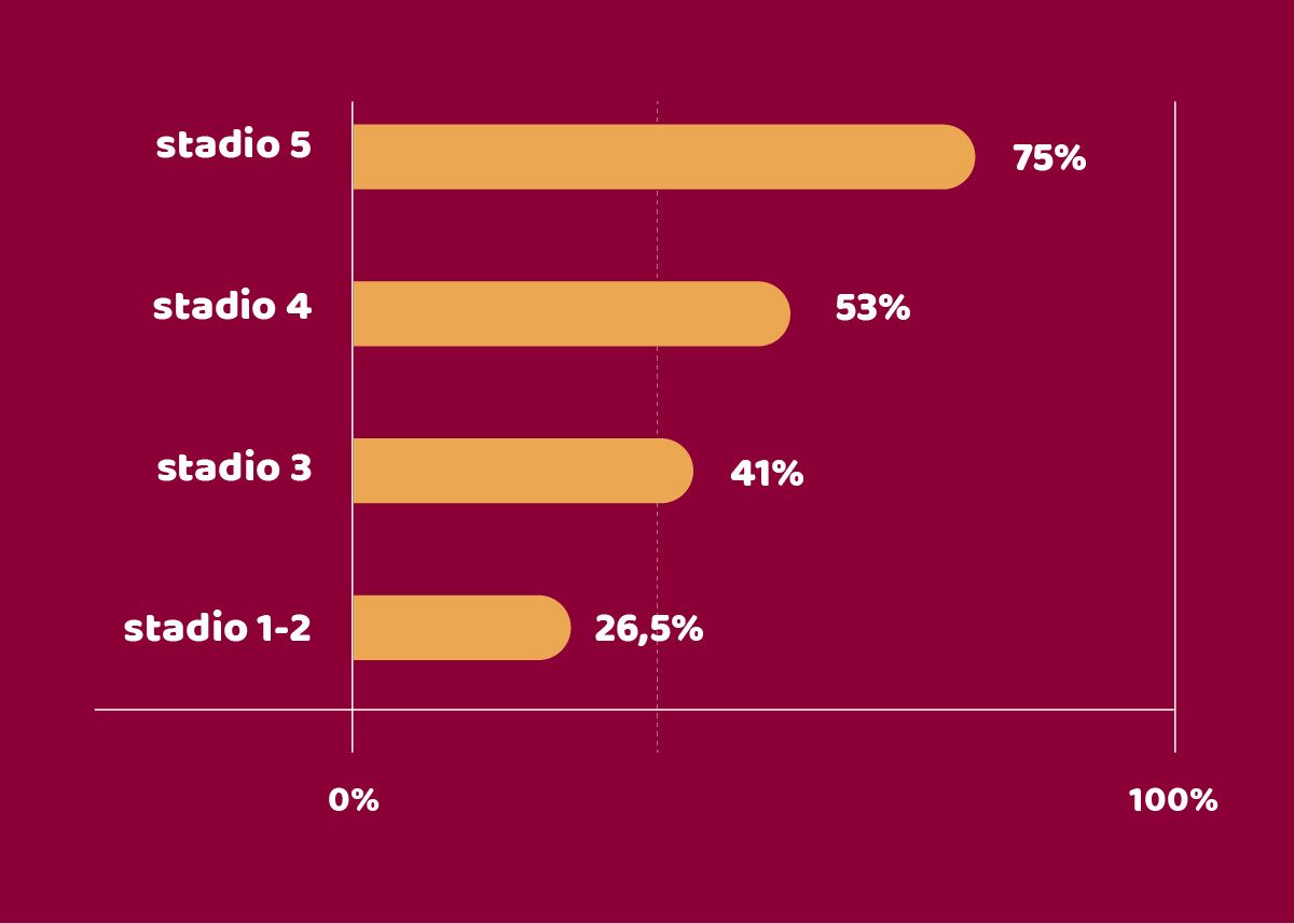Al diminuire dei livelli di clereance di creatinina, e quindi al progredire della malattia corrisponde un aumento dei livelli di anemia.