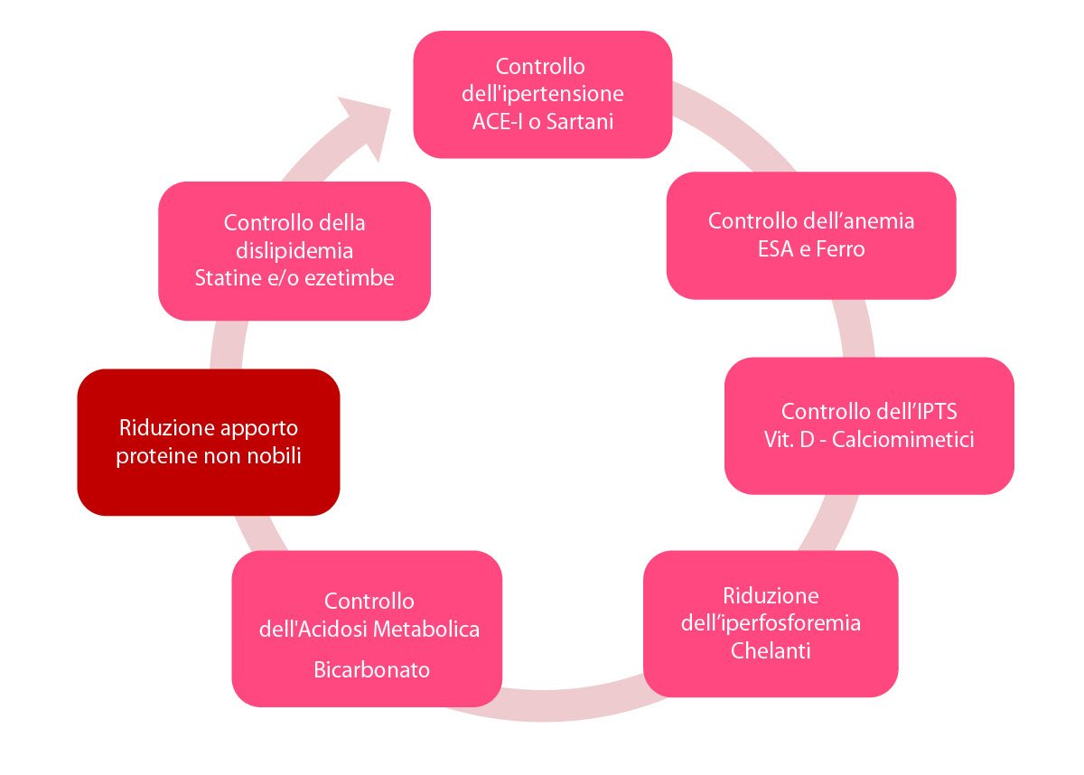 Nella gestione della malattia renale cronica, come abbiamo visto, un primo approccio fondamentale per la gestione della progressione è rappresentato dall’equilibrio tra terapia dietetica nutrizionale e quella farmacologica.