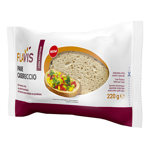 Il pane… c’è chi lo ama per la sua soffice mollica, chi lo preferisce croccante e, i più golosi, rigorosamente farcito! In FLAVIS, per il nostro delizioso pane, selezioniamo con cura solo ingredienti di altissima qualità, in linea con le tue specifiche esigenze nutrizionali. Il risultato? Pane aproteico, fragrante, ricco di fibre, con poco sale e senza conservanti. Semplicemente perfetto per seguire l’alimentazione a ridotto contenuto di proteine, senza rinunciare alla sua indiscutibile bontà.